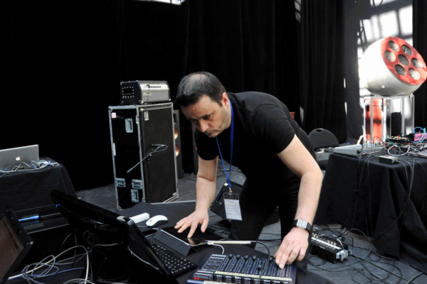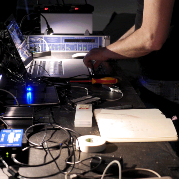 D’essence électronique, sa musique s’élabore à partir de matériaux réels, concrets ou instrumentaux, mais aussi à partir d’objets sonores produits par une lutherie informatique, personnalisée et en perpétuelle réinvention. Cette technologie présente dans ses œuvres est à la fois un outil et une façon d’interroger la production contemporaine du sensible. Son goût pour le spectacle vivant, et plus particulièrement ses liens avec la danse, le mène à produire des pièces musicales qui engagent également l’espace, le corps, le geste et la scénographie. Depuis près de 20 ans, il se produit dans des performances où la scénographie qu’il conçoit et réalise constitue un élément indissociable du sonore, faisant entrer ses pièces dans la transdisciplinarité.